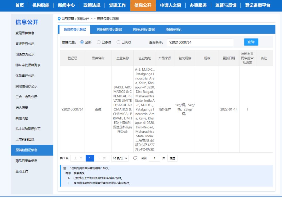 我司积极进行原料药审批,几乎每月均有新增批准品种。
