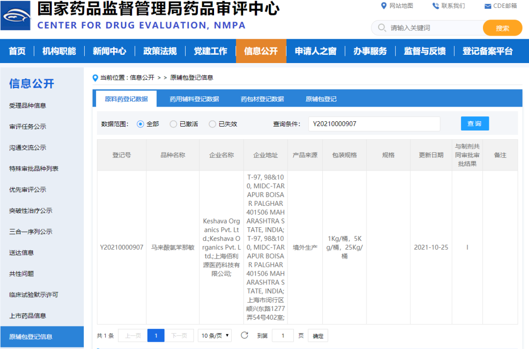 以下为新增待 批准 原料药详情:
