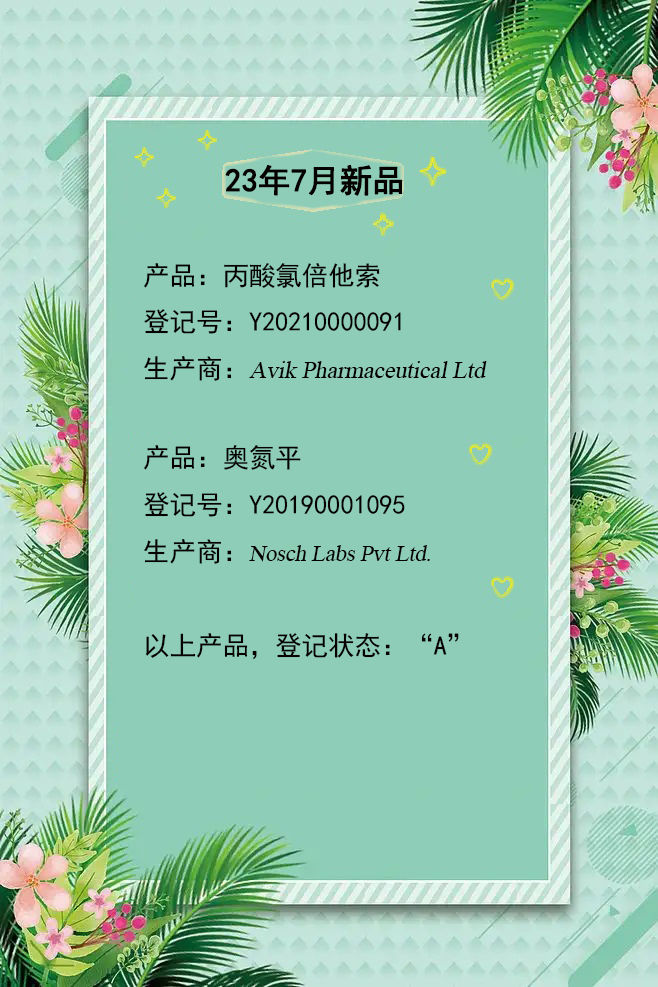 我司积极进行原料药审批,几乎每月均有新增批准品种。